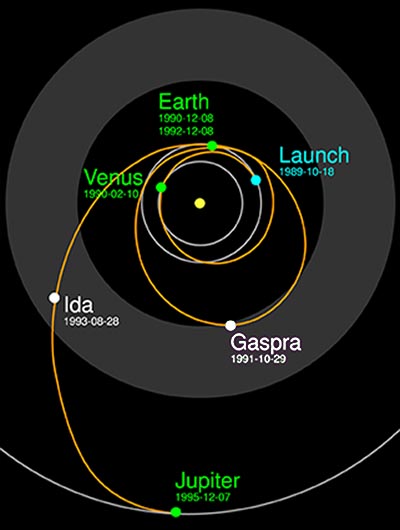 Después de este encuentro, regresó a la Tierra como parte de su estrategia de impulso gravitacional y fue dirigido hacia Júpiter. En este último trayecto sobrevoló otro asteroide, (243) Ida, el 28 de agosto de 1993 a una distancia mínima 2.400 km. En esta aproximación descubrió el primer satélite de un asteroide: Dáctilo (oficialmente (243) Ida I Dactyl). En el momento del descubrimiento, Dáctilo estaba a 90 km de Ida y seguía una órbita antihoraria.