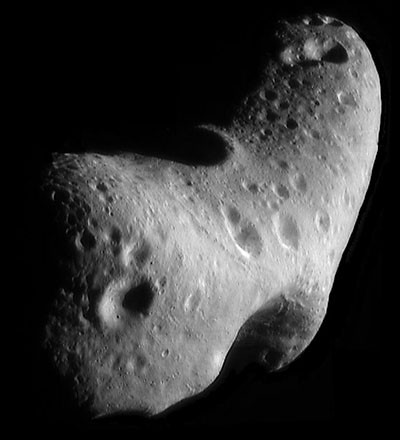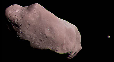 (951) Gaspra: es un asteroide de tipo S de la familia de asteroides Flora. Presenta forma irregular (18,2 x 10,5 x 8,9 km) y está ubicado en el borde interior del cinturón de asteroides. Fue descubierto por el astrónomo ruso Grigori Neúimin el 30 de julio de 1916 desde el observatorio de Crimea en Simeiz (Ucrania, actualmente anexionada por Rusia unilateralmente —sin reconocimiento internacional—). Se le dio ese nombre en referencia a la ciudad costera de la península de Crimea bañada por el mar Negro.