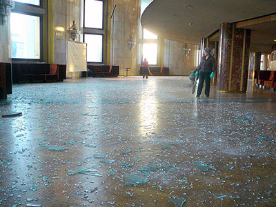 Dos minutos después de la explosión, la onda expansiva llegó al suelo causando dañó miles de edificios, rompendo ventanas e hiriendo, por los fragmentos de vidrio proyectados, a unas 1.500 personas.