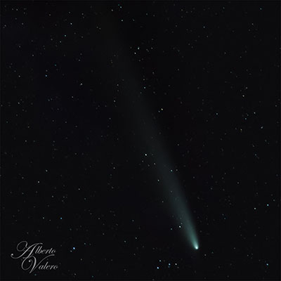 Presentó dos colas perfectamente diferenciadas. Una cola ancha y borrosa, es la cola de polvo del cometa NEOWISE (que se crea cuando el polvo se levanta de la superficie del núcleo del cometa y se arrastra en la estela del cometa en su órbita).