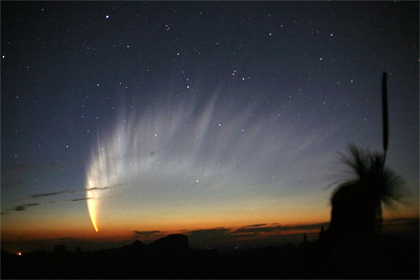 Lo más sorprendente de este cometa fue que, tras abandonar el perihelio, desplegó un abanico de seis colas separadas sobre el horizonte.