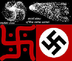 Como curiosidad, algunos astrónomos y estudiosos relacionan la esvástiva con la visión del acercamiento de un cometa con movimiento de rotación, de forma que su eje quedara orientado hacia el observador terrestre, y el principal candidato a ello es este cometa Encke.