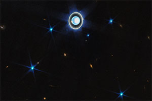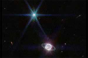 - Lunas de Urano: sistema uraniano tomado con el James Webb en que aparecen seis lunas (NASA/ESA/CSA/STScI; procesado: J. DePasquale).Enlace a la imagen, y a la imagen con las lunas etiquetadas..