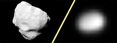 Es una pequeña luna de 1.124 km de diámetro medio que orbita Saturno a una distancia semejante a la que lo hace la Luna alrededor de la Tierra.