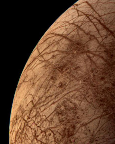 Otro gran hallazgo de las sondas fue la red de lñieas que atraviesan la superficie de la luna Europa. Si bien fueron descubiertas por la primera de las sondas, la mayor proximidad de la segunda permitió entender que esas líneas apenas tenía relieve topográfico. La superficie de Europa estaba cubierta de hielo de agua y se planteaba por primera vez la posibilidad de que estas líneas fuesen fracturas de esta capa de hielo bajo la que habría un océano de agua líquida interior no muy profundo.