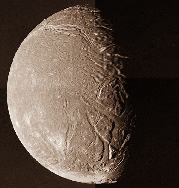El satélite Ariel es casi esférico, el cuarto más grande de Urano (ligeramente menor que Umbriel) y el 14º de los satélites conocidos del sistema solar.