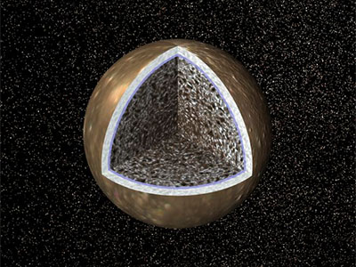 Esta imagen ampara el modelo de la década de 1990 por el que se propone que una capa líquida podría estar actuando como un amortiguador dentro de Calisto.