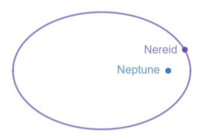 Nereida es la tercera luna mayor de Neptuno y una de las más externas conocidas del planeta. Nereida es única porque, aunque su órbita es prógrada, es una de las más excéntricas de cualquier luna en nuestro sistema solar. Está casi siete veces más lejos de Neptuno en un extremo de su órbita que en el otro (pasa de acercarse a 1.353.600 km a alejarse a 9.623.700 km), y está tan distante del planeta que precisa de 360 días terrestres en cmpletar su traslación alrededor del gigante de hielo. Todo ello sugiere que Nereida puede ser un asteroide capturado o un objeto del Cinturón de Kuiper.